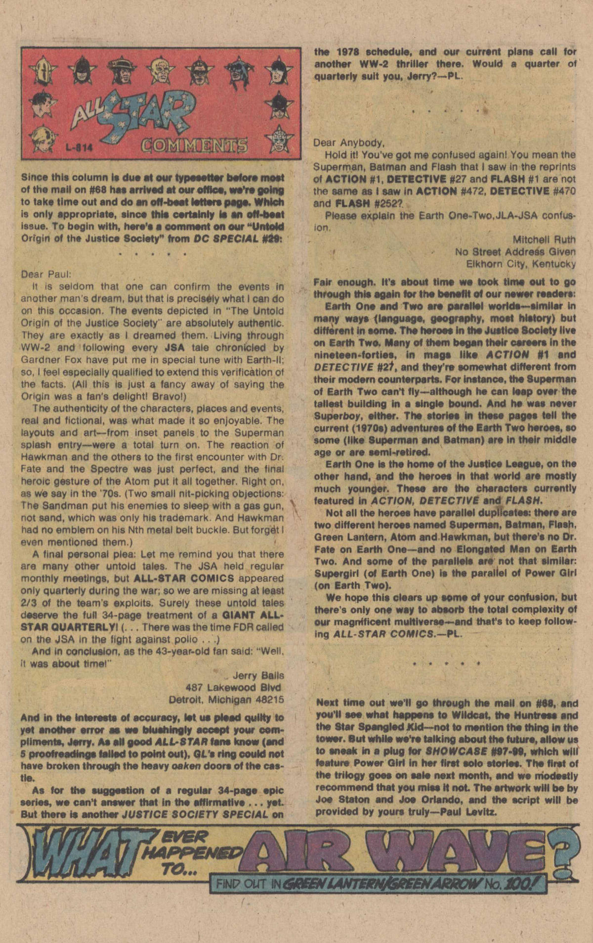 The letters page includes correspondence from Dr. Jerry Bails, the grandfather of comic book fandom, whose love for the golden age adventures of the Justice Society of America set him on the path of creating some of the earliest super hero fanzines, awards and indexes about those early comics. Here, he writes about the recently-released origin of the JSA, a story which, like me, he enjoyed a great deal.