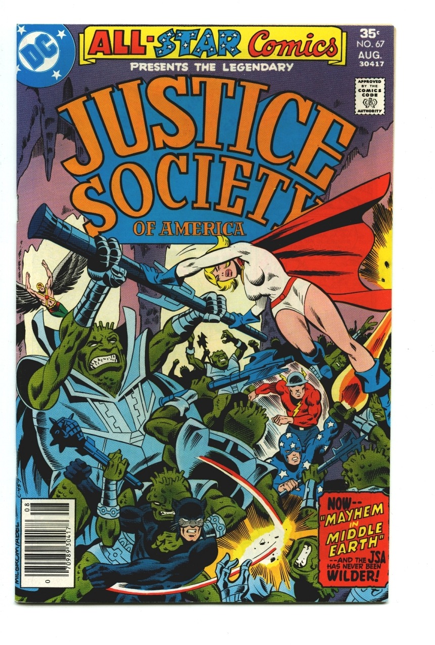 Naturally, I tended to sneak over to the 7-11 anyway (Sorry, Ma.), but I was paranoid enough that I never dared buy any comics on one of those covert crossings, for fear that my parents would see them and wonder where they’d come from. But I was a big enough JSA fan by the summer of 1977 that, when I saw that ALL-STAR #67 had come out, I staged an overwrought drama with a childhood friend (whom I prompted to say that he’d seen the very issue I needed at the 7-11 when he’d been there earlier that day), and convinced my Mother to extend my boundaries far enough so that I could get the book myself.