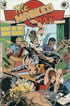 Much like its fellow Eclipse title, ZOT!, I didn’t start reading THE MASKED MAN until after the series had gone on hiatus. And, like ZOT!, I picked up a set of the run to date at one of CAPTAIN BLUE HEN’s annual “fill-a-box-of-back-issues” sales, and so was ready and waiting when the series returned in black and white some months later.