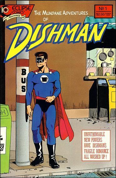 An exceedingly clever mini-comic, I first encountered DISHMAN when the first six installments were compiled into a single regular issue by Eclipse. It made me want to read more, and I eventually managed to hunt down the first 10 issues of the minicomic. If anybody has any further issues that they’d be willing to part with, they should drop me a line.