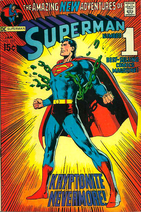 An acknowledged classic, for obvious reasons, this SUPERMAN #233 cover features a Superman who is lean, powerful, dramatic and realistic (at least within the context of a super hero comic book cover.) The yellow-orange background silhouettes and pops his figure perfectly.