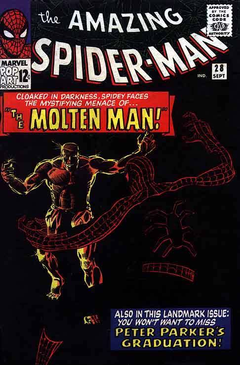 A pretty brilliant cover from Steve Ditko that reduces the iconic silhouette of Spider-Man down about as far as is possible while still keeping it identifiable. The fact that the caption boxes are also done in Spidey’s colors isn’t an accident, either.