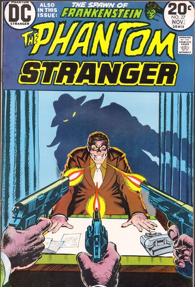 Nice PHANTOM STRANGER cover by Nick Cardy, likely over another Carmine Infantino sketch. A good concept, and fine composition–see how the converging gunfire draws your attention right to the figure in the center–and a nice use of color on this one.