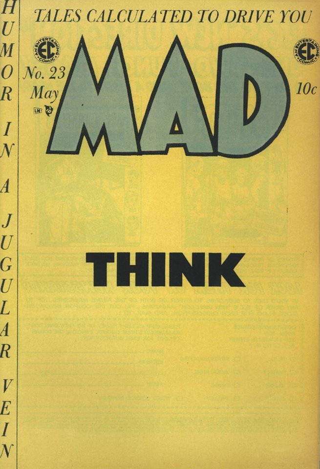 It’s the final comic book format issue of MAD before its transition into one of the most popular magazines of the 20th Century, and artist and editor Harvey Kurtzman eschews any visuals in order to get MAD’s particular philosophy across.