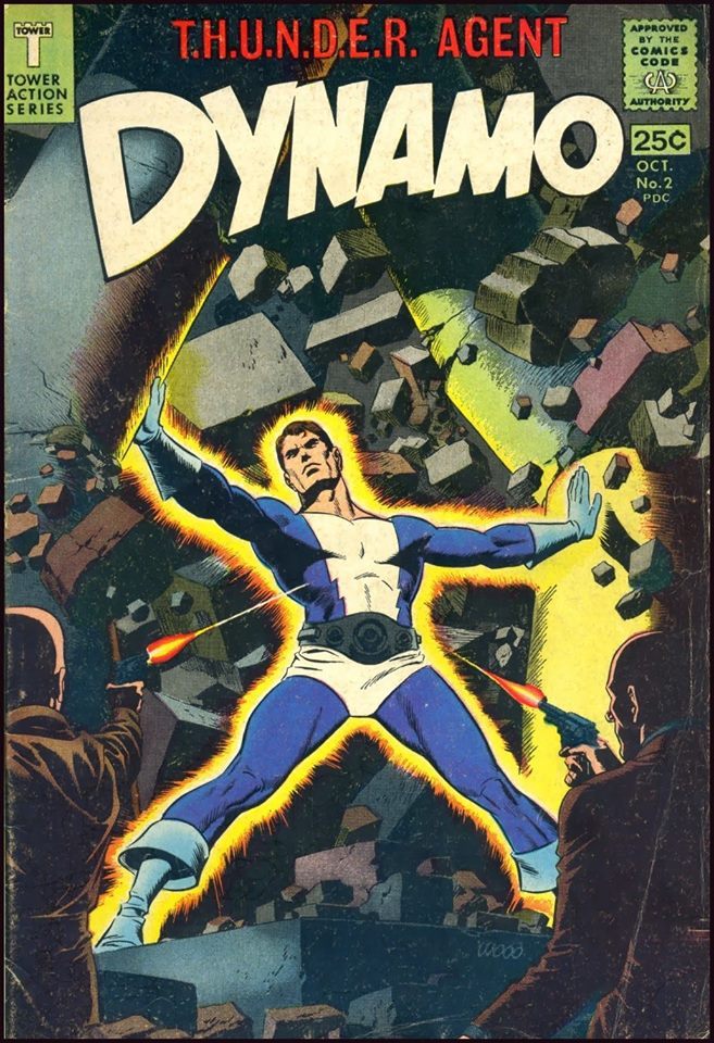A masterful Wally Wood cover for DYNAMO evoking the legend of Samson. Atop Wood’s immaculate inking technique and brilliant use of shadows, the color has been expertly applied. Dynamo is like a beacon surrounded by a yellow nimbus, and his white and blue costume represent the only primary colors within the image.