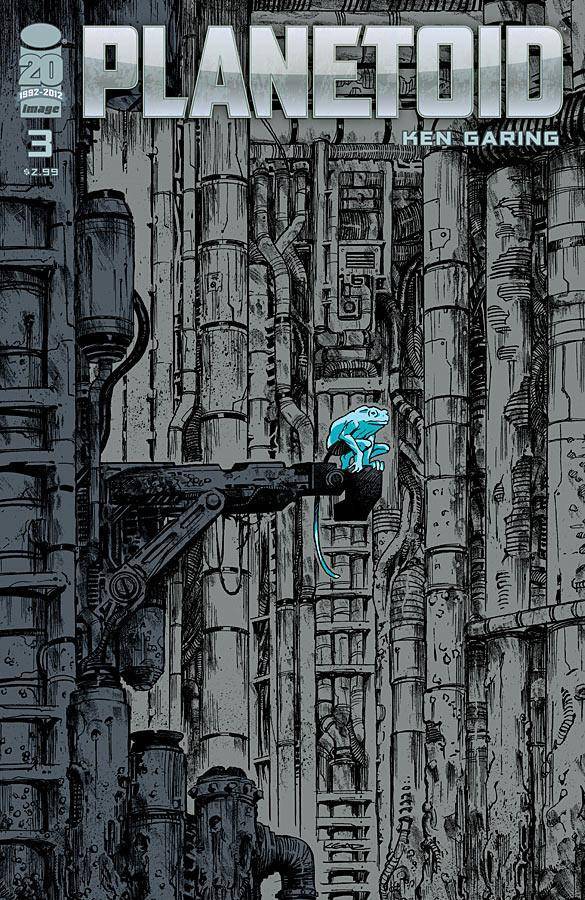 An evocative PLANETOID cover by Ken Garing. Conveys a great sense of both scale and age to the cityscape and keeps the focus on the central creature, despite how tiny he is in the image.