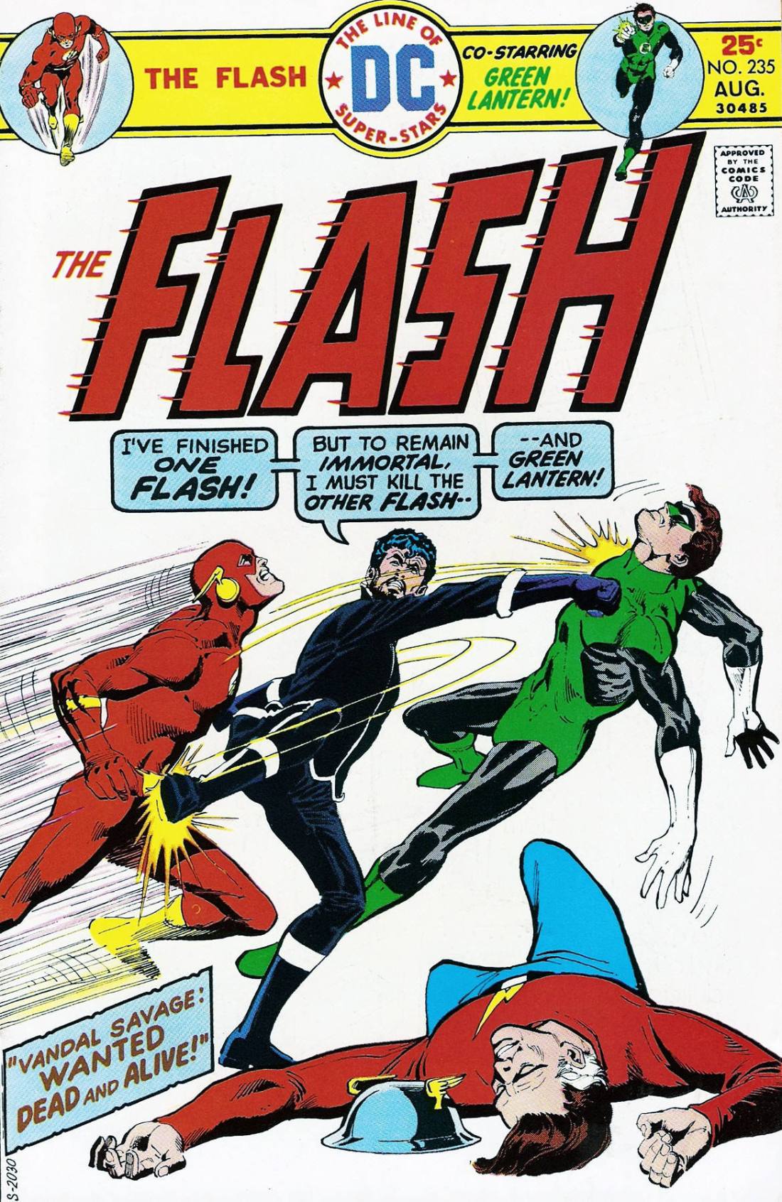 This story also introduced me to Vandal Savage, a mainstay DC villain whose history extended back to the Golden Age. Here, the issue opened with the Flash racing home, having been delayed by some super hero activity from a dinner with his wife, Iris. Arriving at the Allen residence, he finds Iris absent, but the villainous Savage in attendance. Flash engages his immortal foe, and through the course of their scuffle, the entire house is destroyed!