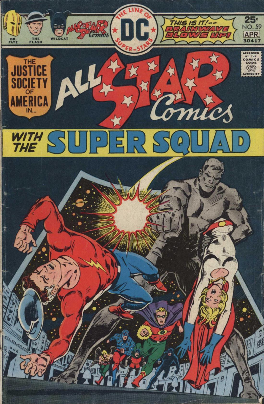 The sudden change of heat and gravity startles brainwave enough so that his concentration wavers and his new body is revealed to be another mental illusion. With the two villains now dispatched, Power Girl frees the damaged ship from the Sun’s gravity well, and he heroes return to Earth, where they enjoy a final laugh at Wildcat’s expense. All in all, it’s a fun adventure that owes much to the Marvel style of the time–a lot of fighting, some very arch characterization, and a villain plot that doesn’t hold up to even the slightest bit of scrutiny.
