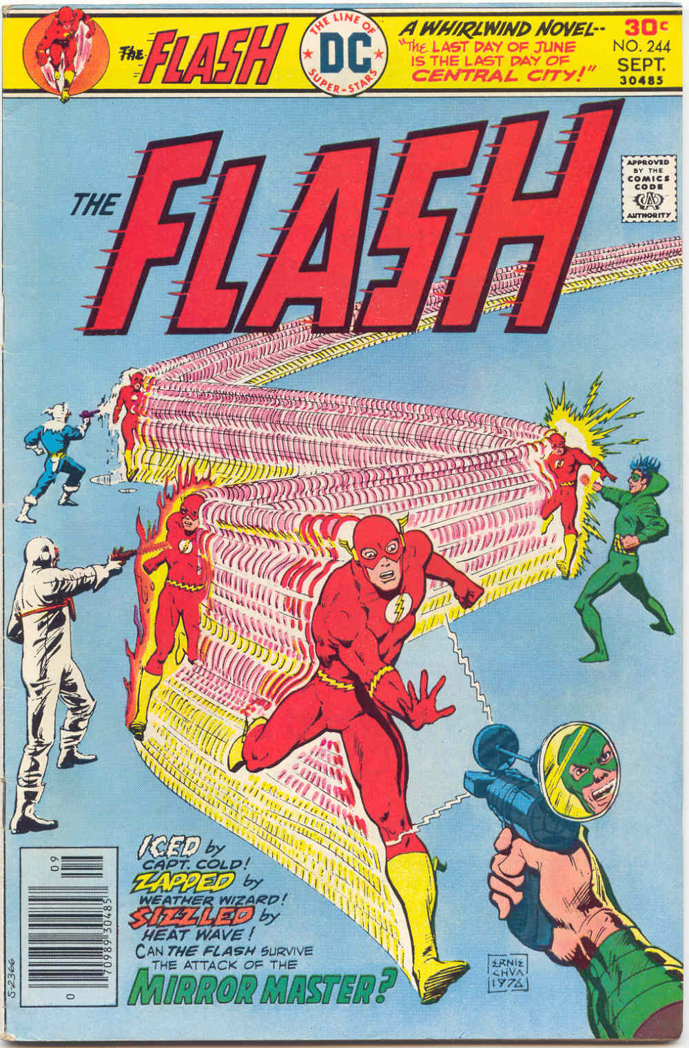 And so, knowing that the Rogues are trying to save the city, Flash runs interference as Mirror Master swipes the final device. He doesn’t bother to tell anybody what’s going on, as that would be too easy. Instead, he takes guns out of the cops’ hands and so forth so that Mirror Master won’t tumble to what’s going on. But Sam Scudder isn’t that oblivious, spotting the Flash’s activity in a rear-view mirror, and he takes advantage of the situation to blast the Flash with a mirror-weapon that scrambles the speedster’s molecules.
