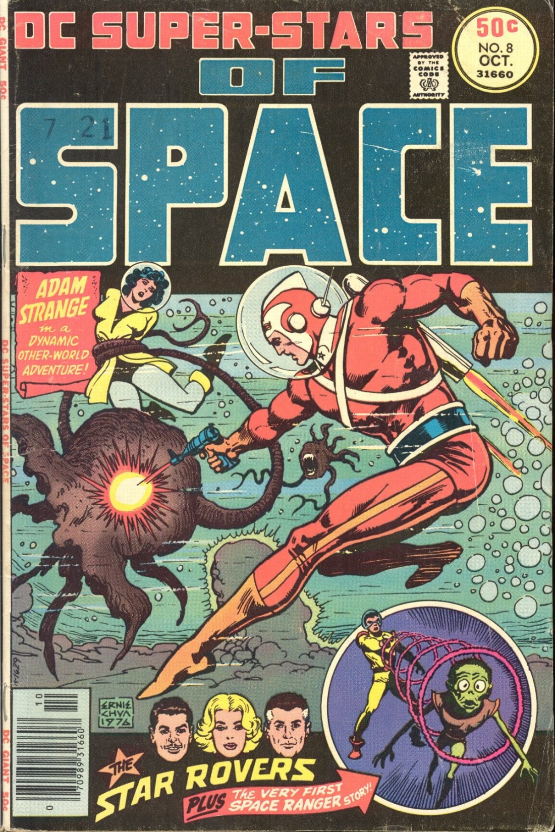 By this point, I was purchasing DC’s remaining all-reprint titles semi-religiously. That included DC SUPER-STARS, which for this eighth issue once again revisited the concept of space heroes, as it had been doing in every even-numbered issue. This wasn’t a reaction to the still-in-the-future Star Wars, as one might expect. Ad truth be told, I was only lukewarm on most of these guys. But I was definitely comfortable with routine, so I picked this issue up when I came across it.