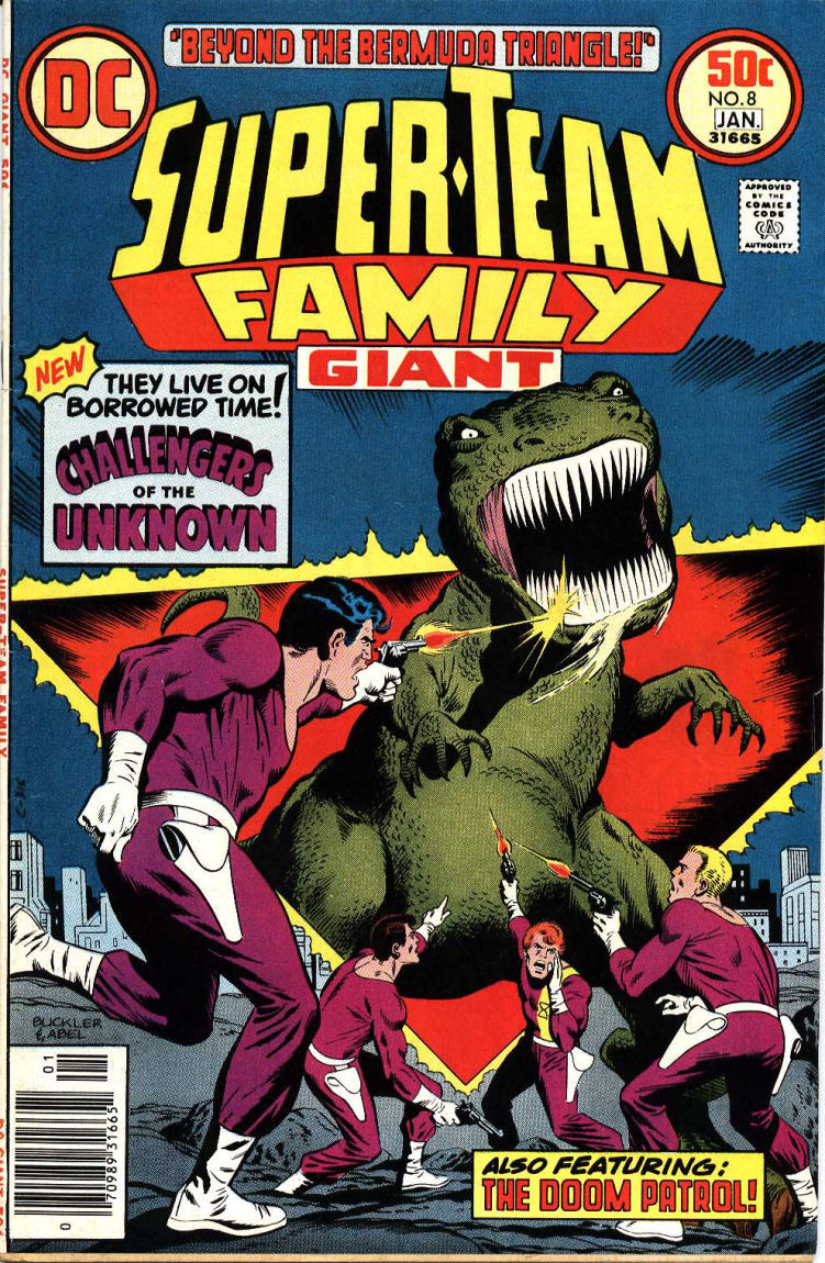 New DC Publisher Jenette Kahn wasn’t a big fan of the many reprint titles that DC was publishing at the point of her arrival, and on her new watch, they began to be fazed out in favor of new material. This shift in priorities first manifested itself to me in the pages of SUPER-TEAM FAMILY. Previously, this had been a grab-bag series of super hero team-up stories of the past, and a regular purchase of mine. But beginning with this eighth issue, the lead berth in the magazine was handed over to new adventures of the Challengers of the Unknown.