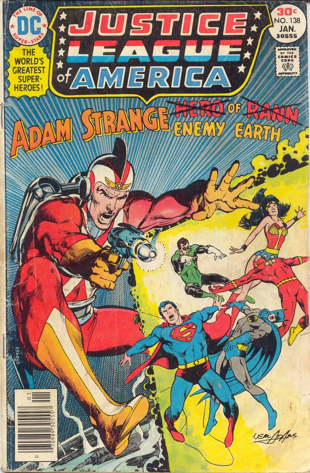 In 1976, there wasn’t a more popular or elusive artist in all of comics than Neal Adams. I was only nine years old at the time, but even then I was aware of who he was, information gleaned from assorted letters page praise from awestruck fans. But by this point, it was a rare thing indeed when Neal would do a new comic book story, but for whatever reason–probably is involvement with new DC publisher Jenette Kahn–Neal came back and did a handful of covers at this moment, including this one on my subscription copy of JUSTICE LEAGUE OF AMERICA.