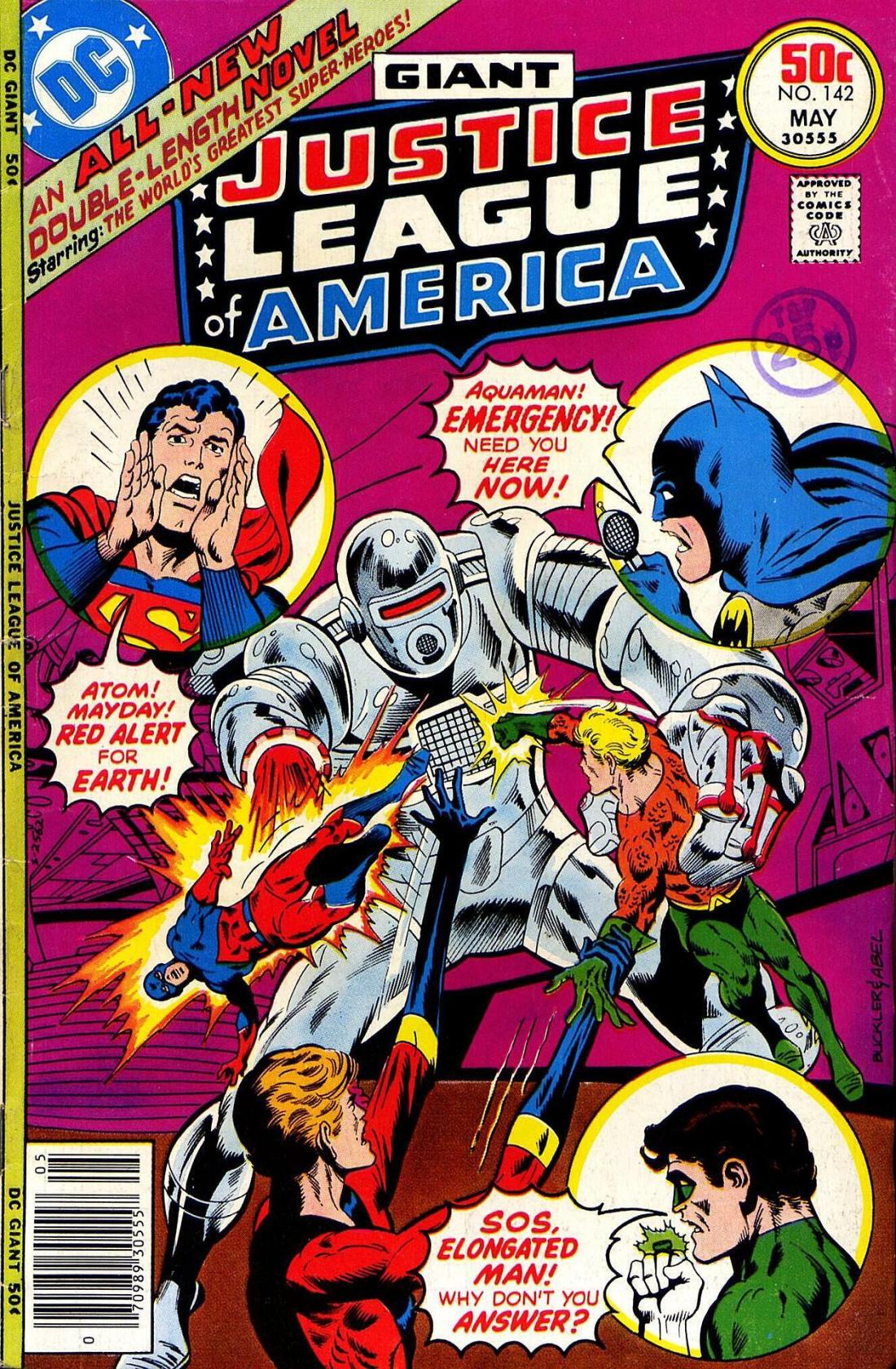Arriving in Miami, Aquaman and the Elongated Man find the city being evacuated, as a mysterious death ray is causing people to drop over dead. The two heroes are able to locate the Construct’s Cannons and find the machinery for his Thanotron, and through skill and trickery, the Elongated Man is able to destroy the thing. But the Construct is unconcerned; it’s just a machine, he can always build another one. It’s Willow he’s worried about. Meanwhile, having finished their adventure with the Manhunters, the other Leaguers turn their attentions towards finding their missing comrades. Green Arrow and Flash take this opportunity to tell Superman that they don’t like the way Wonder Woman has been acting, and Ollie wants her kicked out of the League. A troubled Superman realizes that the team has some internal problems building up that may destroy it.
