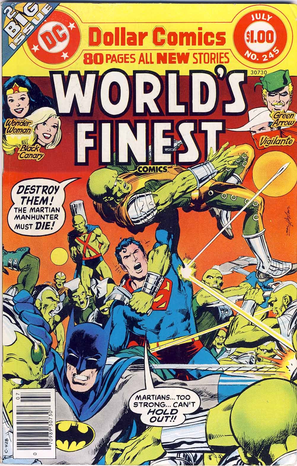 I picked up this issue of WORLD’S FINEST COMICS, despite its dollar price tag, because its lead story was going to wrap up the ongoing Martian Manhunter storyline that I had been following in recent issues of ADVENTURE COMICS, and that I liked quite a bit. So this was my first encounter with the phenomenon of one writer being called upon to finish up the work of another, and the dissonance that can happen as a result. But hey, that Neal Adams cover is pretty great. Based on the background colors, my guess is that Neal colored this one himself–those rich oranges and browns weren’t typical for a DC book in those days.