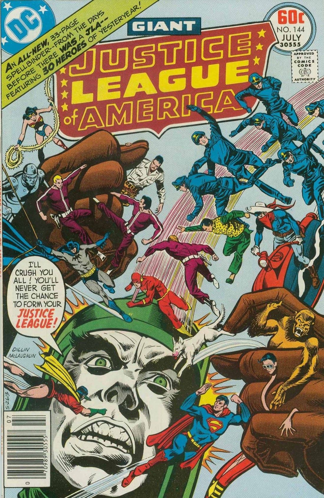 Now this was and is a favorite comic book of mine. This issue of JUSTICE LEAGUE OF AMERICA arrived in the mail via subscription. I’d been seeing ads for it for a week or two in other books, so I was primed for it. And it did not disappoint. It was one of two comics released that year (DC SPECIAL #29 was the other) that revealed the secret origins of DC’s top two teams: the Justice League and the Justice Society. This Dick Dillin cover, while rife with figures that are a bit stiff and lifeless, communicates the scale of what was to follow.