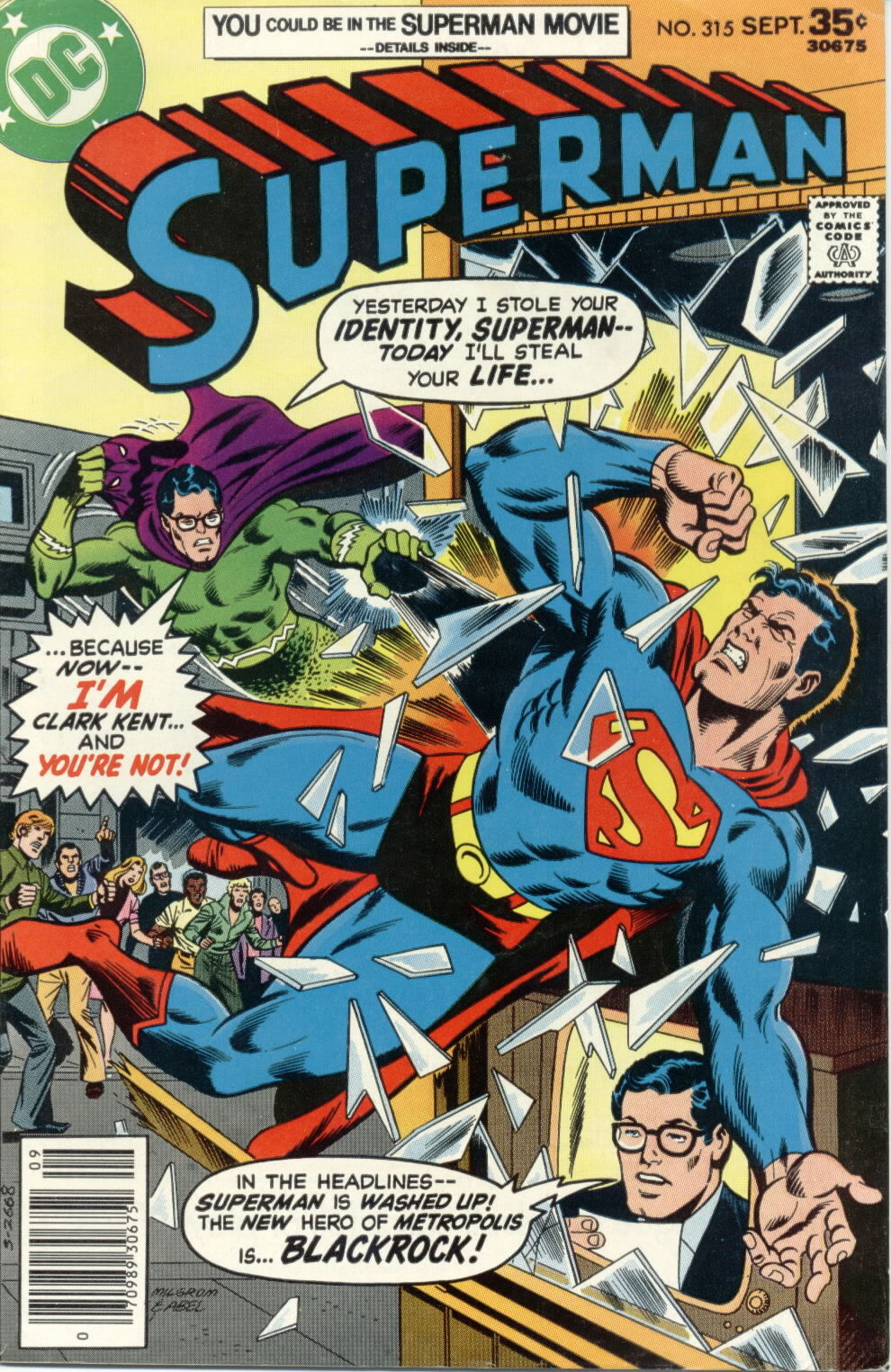 Swiftly dispatching the Skull operatives, Superman carries them back to Metropolis, intending to turn them over to the cops. But on the way, he’s jumped by Blackrock! Blackrock’s whole motivation is to become the pre-eminent hero of Metropolis (one whose exploits get covered exclusively on WGBS’s rival station UBC) so he wants credit for the Skull agents’ capture–and after a short battle, he succeeds in knocking Superman unconscious and heading off with the Skull captives. Later, Superman commiserates with Jon Ross, the son of his old friend from Smallville Pete Ross, who like his father knows Clark Kent’s true identity.