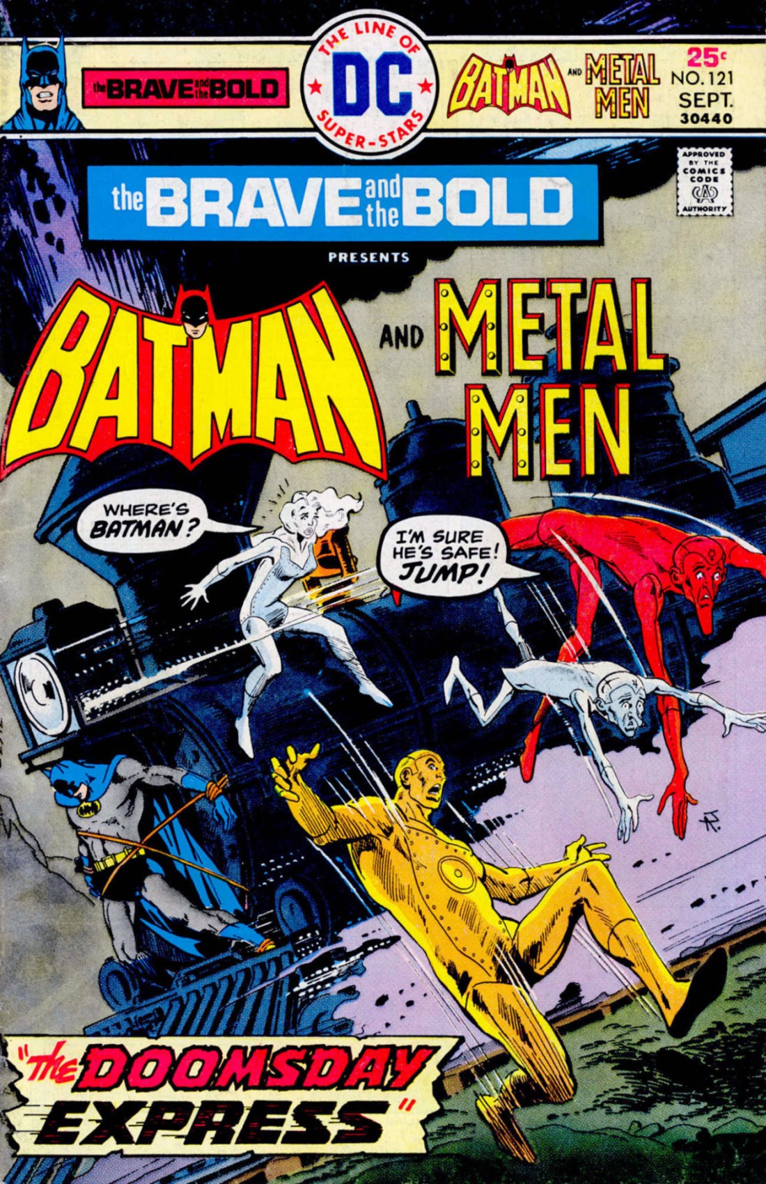 Okay, so here we go. The American bicentennial is here, and as a celebration, a vintage steam-driven train has been brought back out of mothballs to host a traveling exhibition of the Constitution and the Declaration of Independence, along with other objects of historical significance. To guard the train during its journey around the country, the services of both Batman and the Metal Men, of all people, have been engaged. But before the Liberty Express can depart, the Metal Men receive a telegram offering them information on their missing-and-believed-dead creator Will Magnus, and the Metal Men head off to investigate this intel.