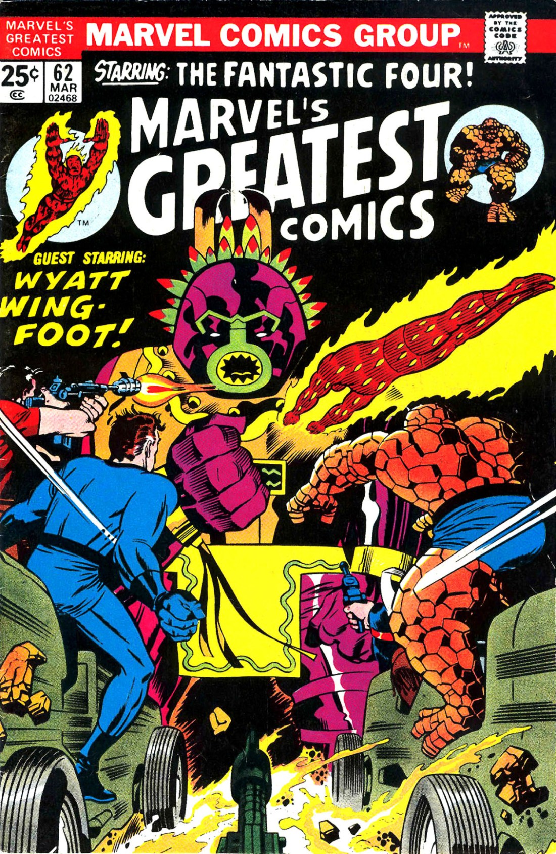 Wyatt is naturally unable to stop the colossal Tomazooma, and he barely escapes from the encounter with his life. This was my first encounter with Wyatt, and he gets a big chunk of the action in the issue–no wonder I liked him! Thereafter, the oil fields go up in an enormous conflagration, bringing the Fantastic Four running. It’s Tomazooma, of course, tearing his way through them. He blasts the Torch out of the sky with twin eyebeams, and the fight is on.