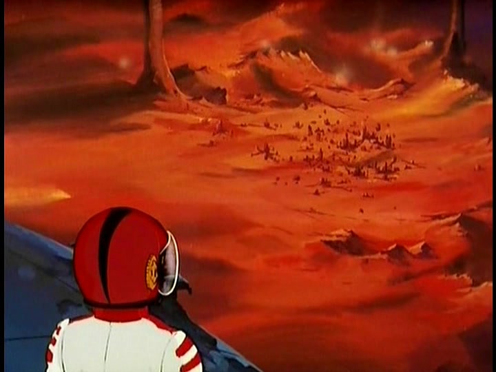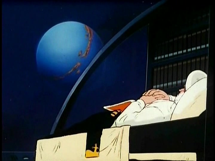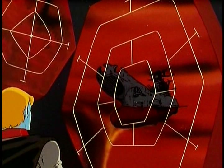 With nothing more that can be done, the Star Force lifts off from Gamilon and heads for its twin planet, the long-sought-after Iscandar, where the hope of all mankind rests. There’s a very beautiful, very simple shot in this sequence in which the Argo and Iscandar in the sky remain stationary, but the curvature of Gamilon is slid away between them, giving the impression of the ship cresting the planet to see their goal hanging there in front of them.