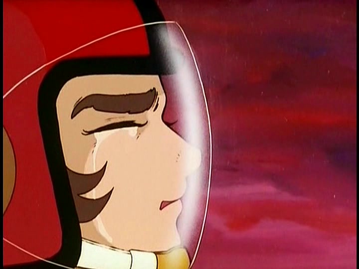 In YAMATO, it’s a much longer piece, and the central thesis of the entire show. For Wildstar and Nova both are confronted with the fact that, in trying to save their own planet and people, they have inadvertently committed genocide against another race, the Gamilons. Nova literally wonders how she will be able to face God when her time comes with so much blood on her hands, and Wildstar picks up a discarded rifle, smashing it to the deck at his feet in a renouncement of the ways of violence that have defined him for much of this journey.