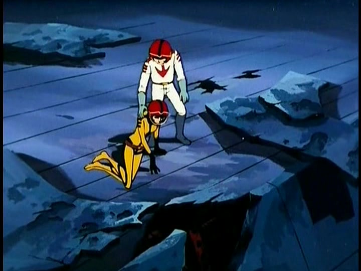 Desslok’s palace flagship is hit and begins to fall from the ceiling. We see him stagger to his feet among other fallen (presumably dead) Gamilon soldiers, only to have the roof cave in painfully atop him. Here, STAR BLAZERS once again edits in footage from elsewhere, in this instance from two episodes later, where it was revealed that Desslok escaped being crushed to death by slipping through a trap door in the floor–good thing the Leader had those installed to get rid of people who laughed at their own jokes, eh?