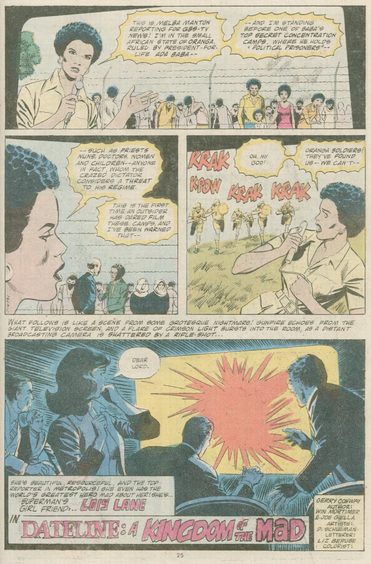 This is followed up by a forgettable Lois Lane story. In it, Lois’s friend Melba disappears while on assignment investigating the dictatorship of Oranga, where President-for-Life Ada Baba is creating a totalitarian regime. Lois and Superman infiltrate Oranga to rescue Melba and liberate the country, but Baba is able to mesmerize Superman with a Kryptonite pendant, forcing Lois and Melba to take maters into their own hands. The whole thing is pretty simplistic and just a shade racist, sadly–it doesn’t age well.