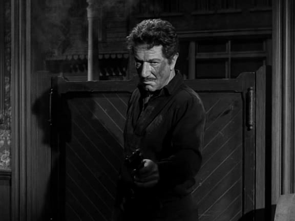 Still, Paladin’s right hand is useless to him. Nevertheless, he confronts Culp at the bar, and provokes the man into going for his gun. “A man died because you needed somebody to hate. I give you the same chance I gave him. Live, and stand trial. I give you that chance, even though you are a pig and a half-breed Apache squaw and your tribe eats with pigs!” As Culp pulls his weapon, Paladin cross-draws with his left hand and coldly guns him down. “Left-handed? You took a chance!” marvels Remy, responding to the gunfire. “No“, responds Paladin. “These things are my profession. He was a fool.” But when Remy asks Paladin if it’s done now, the man in Black simply asks where the others are. They didn’t pull the trigger, but they were all a part of it.