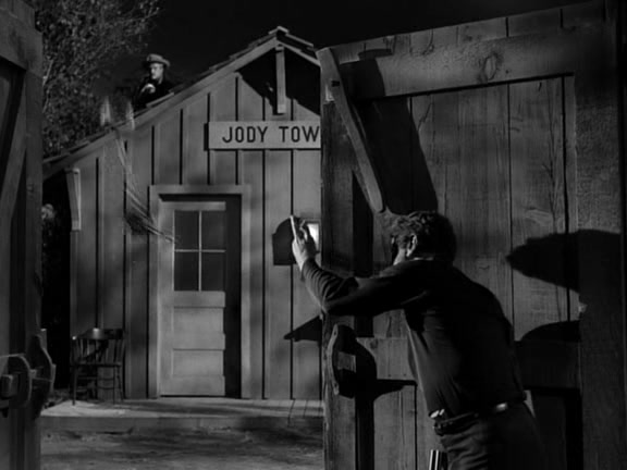 The first half is almost all set-up, a Paladin adventure that goes horribly wrong. Mexican-Irish sheepherder Joselito Kincaid is accused of having killed three men and fled, and Paladin takes up the bounty to catch him and bring him back for trial. Transporting his prisoner, the two find themselves in Jody Town having to wait for the morning train. Paladin wires ahead to the authorities that he has Kincaid in custody, and settles into the depressed town for the night. Along the way, he meets Remy, the Deputy Sheriff who’s more interested in getting along than enforcing the law, and Dot, a woman who works at the local restaurant