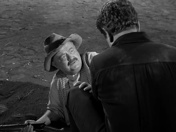 But it’s the second half, airing on January 14, 1961, that truly elevates this story. I’ve made no secret of the fact that I feel the best, most compelling episodes of the series were written by Harry Julian Fink, and here he had twice the real estate to play with. Many of Fink’s best episodes are structured in a similar way: a premise as to Paladin’s character is put forward, and then circumstances conspire to turn the screws, to see how much pressure the Man in Black can take and still remain true to what he believes about himself, and what we, the audience, believe about him.