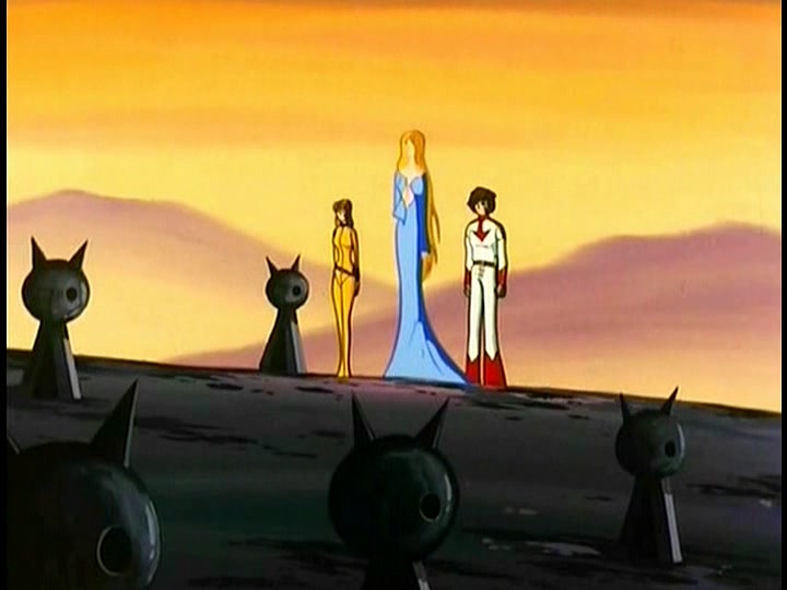 The truth of the matter is, this is a bit of a dull episode, an anti-climax after not only coming this long way but especially after the preceding couple of episodes. it does its job, but that’s about it. The episode opens with the Star Force finally touching down on Iscandar just outside the capital city. Starsha herself is something of a disappointment as well after so many episodes teasing her as a mysterious all-knowing space princess. Here, much like Wildstar and Venture in the pilot episode, she mistakes nova for her sister Astra, and has to be told of Astra’s death on Mars.