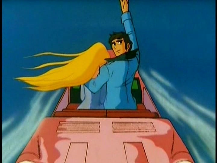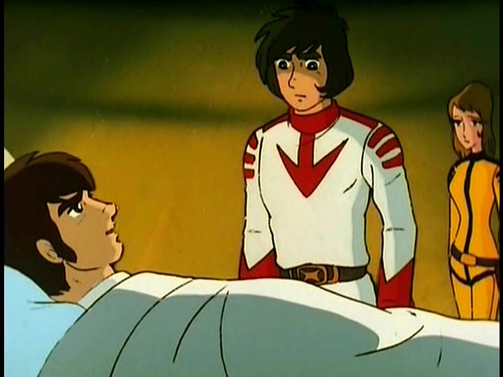 Starsha does have one more revelation to lay on the Star Force, and it’s the biggest stretch in the series (and this is a series whose premise is that a World War Ii battleship is transformed into an intergalactic space ship!) There is one other person on Iscandar, the survivor of a crashed Gamilon prison ship. This is, of course, Alex Wildstar, Derek’s older brother, whose fate had been foreshadowed several times in the series. In point of fact, had YAMATO not been shortened down to 26 episodes from 39, Alex was meant to turn up again as they mysterious space pirate Captain Harlock. So the truncation of YAMATO meant that creator Leiji Matsumoto got to hang onto that character and use him elsewhere.