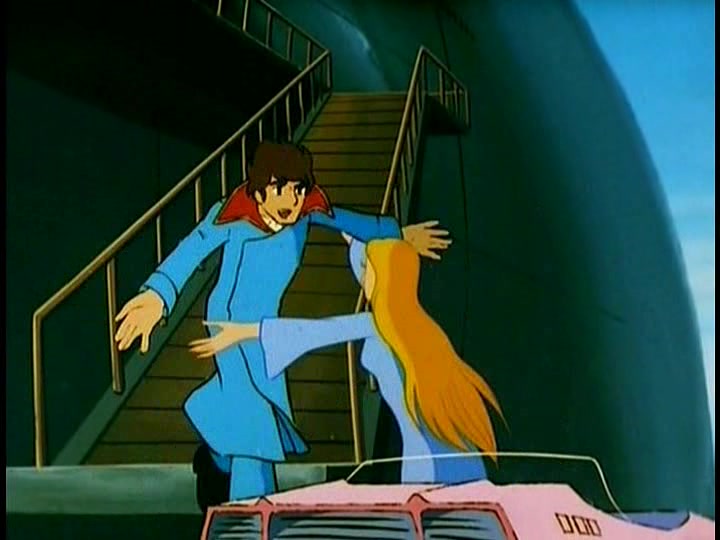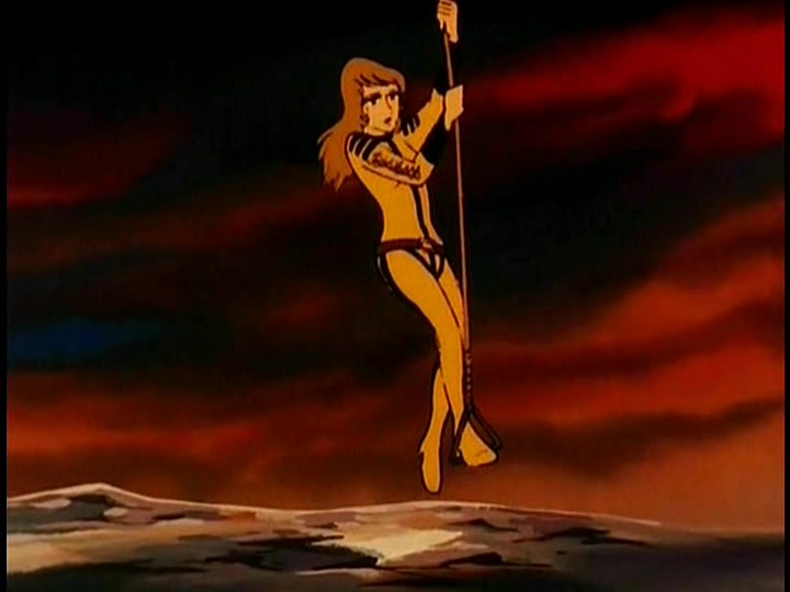 But it’s too late for most of them, so this is really just a naked attempt to get some action and color into an otherwise-talky episode. Sparks and his fellows are all killed–typically, STAR BLAZERS cuts the footage where they fall into a crevice and are killed, but even without it, they’re certainly not rescued. The only one who makes it out alive is Nova, who is scooped up on a tether line from one of the helicopters.