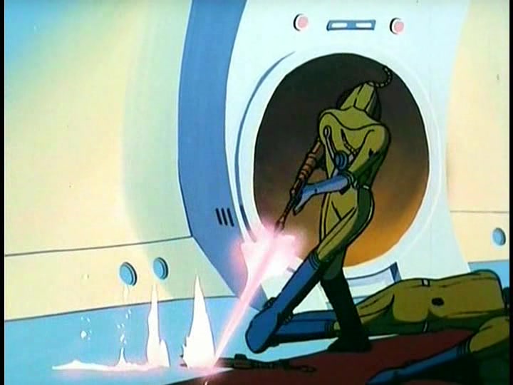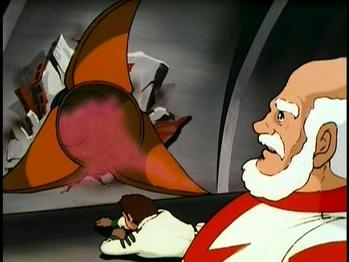 But Desslok sees opportunity in this misfortune. He orders his men to board the Argo, while also pumping a “radioactive sleeping gas” into the enemy ship. And if you think there’s a reason why I put that term in quotes, give yourself a star. In the original YAMATO, this was no sleeping gas at all, but rather a lethal nerve toxin. Those members of the Star Force who breathe it in die almost instantly. STAR BLAZERS cuts these fatalities, but not the shots of the Gamilon soldiers stepping over the lifeless bodies (whom we’re meant to believe are only asleep.)