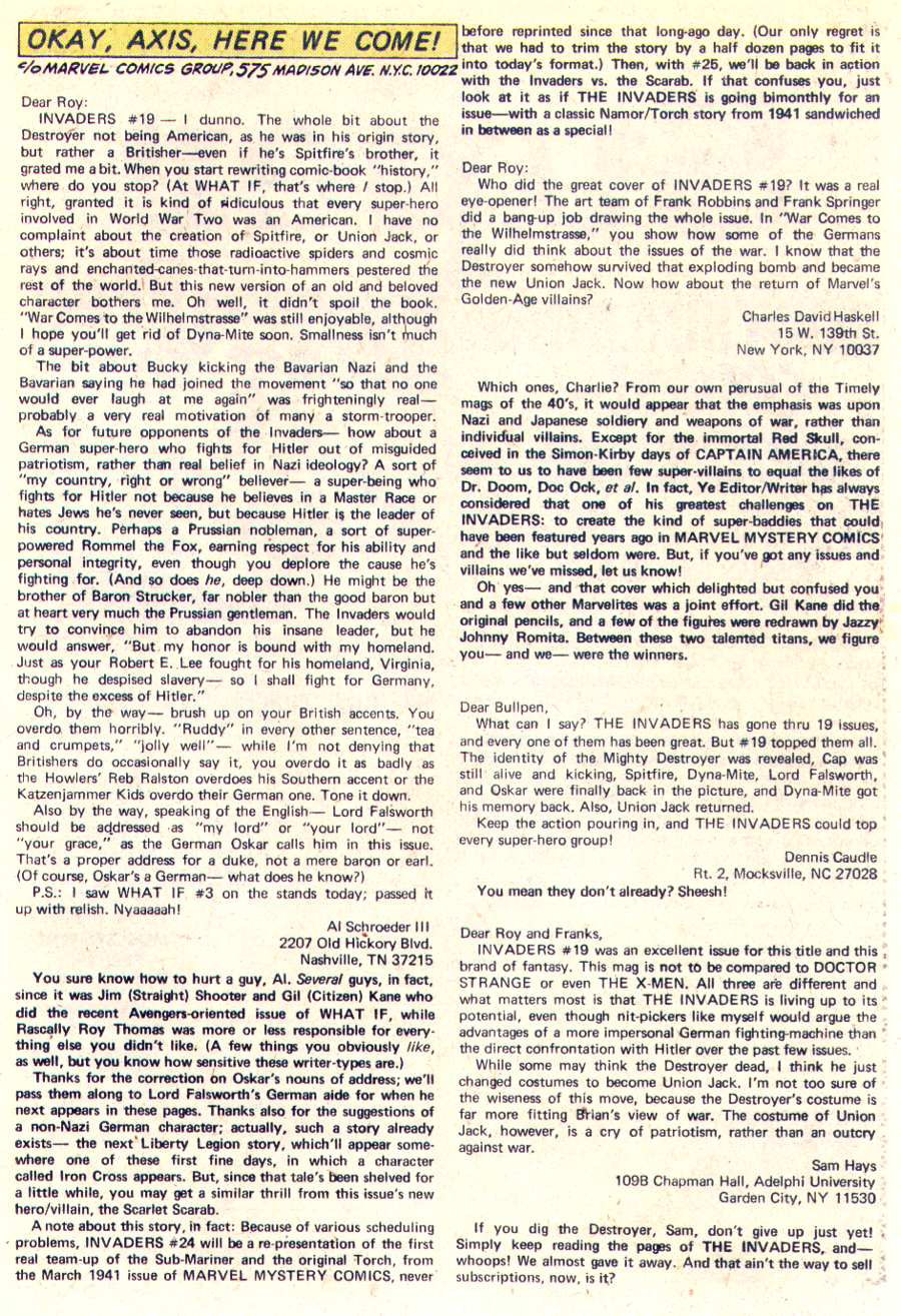 The Invaders return to their Big Ben headquarters where they link up with Union Jack and learn the details of their mission. In Egypt, a group calling themselves the Sons of the Scarab have been making terrorist strikes and stirring up the populace in favor of the Nazis just as General Rommel is about to make a push into Egypt. Allied Command wants the Invaders to rout these Sons. So the team takes a conventional transport to Egypt–but they’re almost totaled when a shell destroys the runway they’re landing on. Fortunately, Namor and the torch are able to save the plane.