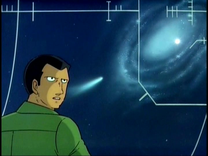 Sandor takes Wildstar back to his lab, where they’ve begun to decipher the message tapes that he brought back with him. It’s a woman’s voice, warning of great danger and asking for help, but the message is broken and garbled. Sandor also shows Wildstar the huge comet that he’s detected far out in space which is on a direct course for Earth’s solar system. He tells Wildstar that the comet is emitting some manner of power ray that may have been what caused the power surge that affected the Argo and the Earth. This is a change from YAMATO 2, where that initial surge was caused solely by Trelaina’s broadcast. Either way, Sandor believes these events are connected, and that the comet isn’t a genuine celestial phenomenon, but rather something made to look like a comet.