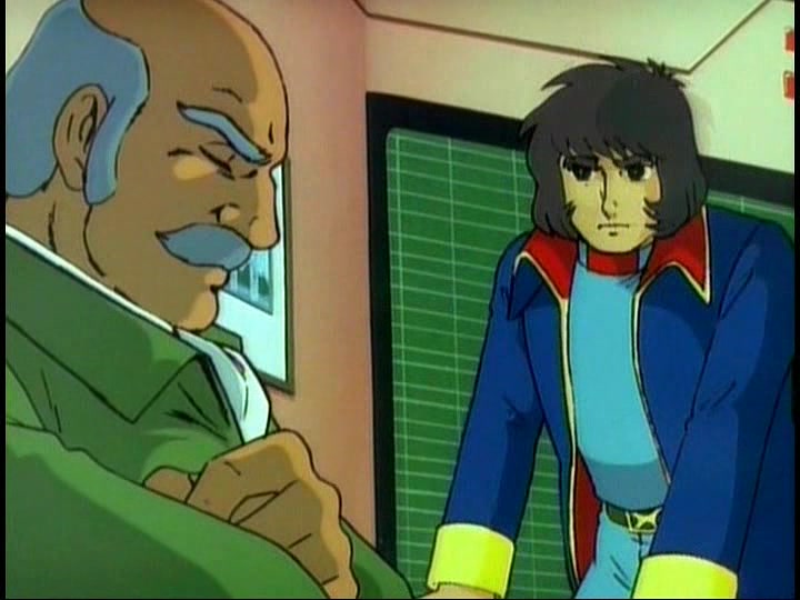 Wildstar storms into the Commander’s office to plead his case for not automating the Argo. “The Argo is a special ship! It proved itself on the long trip to Iscandar and back! And it’s the home of the Star Force! It was Captain Avatar’s last command, that has to mean something–or is your memory so short, Commander?” But General Stone, the number two man, makes a very solid point about all of the ships in the fleet needing to be of uniform design so that they can exchange crews and parts effectively. Before Wildstar’s bravado makes him say something that he can’t take back, there’s a sudden power blackout!