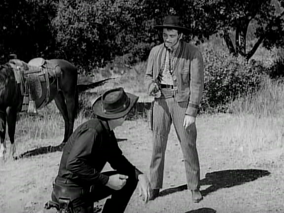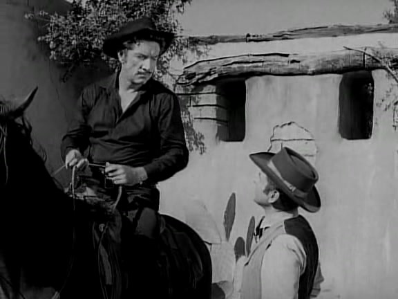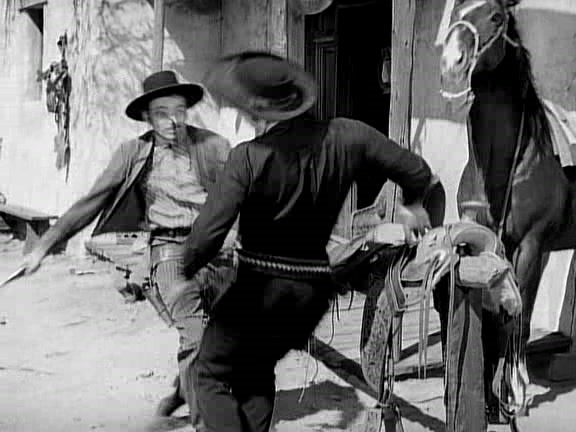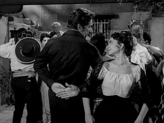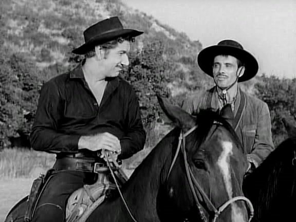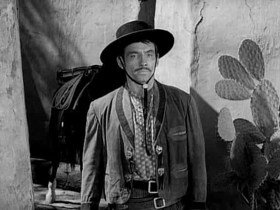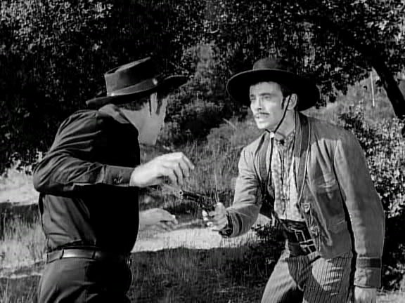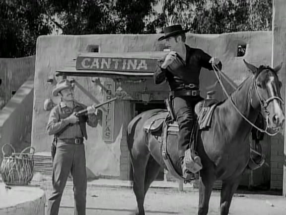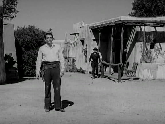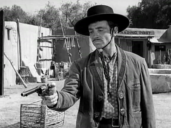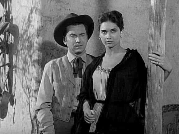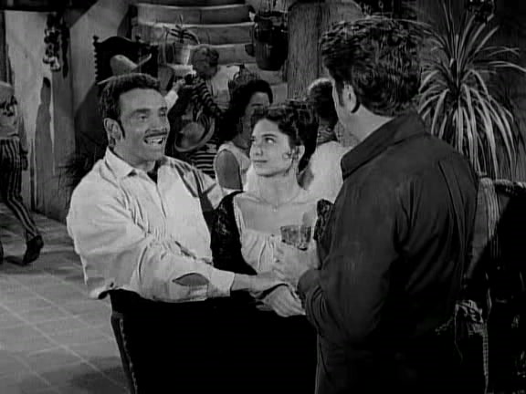 As Maria presses her point, Paladin agrees that if Morrita tries to kill her new love, Paladin will stop him. But Morrita has heard the tail end of this exchange, and as Maria confesses that she does not want to marry him, his heart first breaks and then grows cold. He demands the name of Maria’s lover–and the desk clerk steps forward. (He tells Morrita, “You know my name!’ even though he hasn’t been given a name in the episode. But the credits list him as Will Haskell) Morrita slaps him, asks him if he owns a gun, and promises to meet him the next morning. “Die big, mister. Maybe she’ll cry for you!“