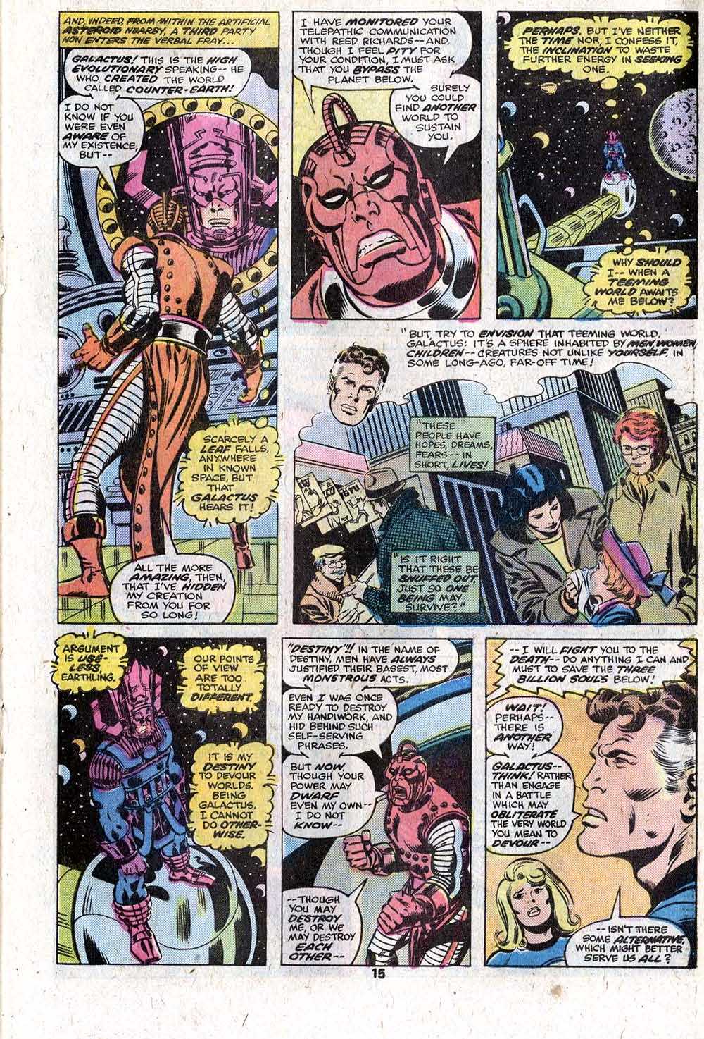 Before the Thing can expire, Reed is able to stretch out his arm and snatch him back to within the biosphere (and he clandestinely uses only his left arm for this task, his right one having lost its pliability, unbeknownst to the other members of his team.) The High Evolutionary, creator of Counter-Earth, the planet that Galactus intends to consume, attempts to reason with the World-Devourer, one Kirby character to another, but to no avail. Galactus hungers and he must feed. The High Evolutionary vows to protect Counter-Earth with all the power at his command, but Reed Richards offers up another solution.