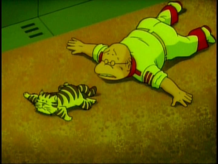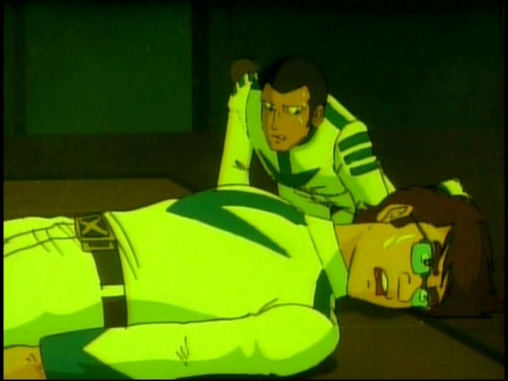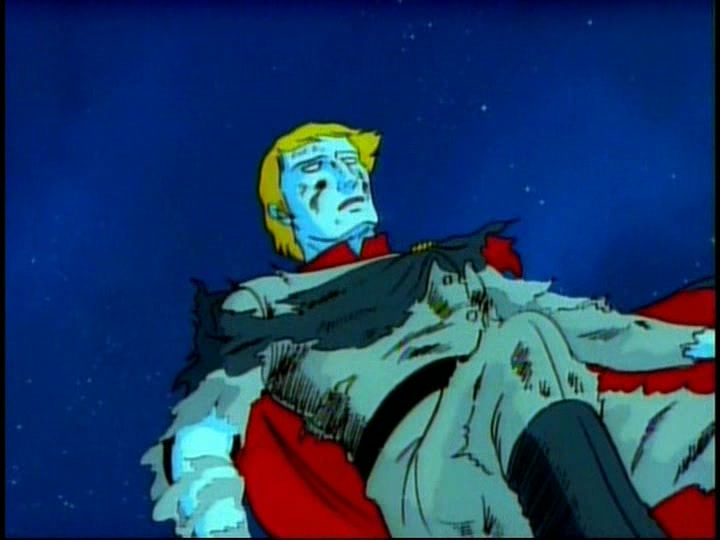 As Desslok wraps up his snarky message, Wildstar and everybody else are suddenly pinned down to the deck. On the second bridge, Sandor and Royster have succeeded in reactivating the gravity control unit, but the setting is far too high, crushing the Star Force crew under several G’s of gravity. If anything, they are now even more helpless than they had been.