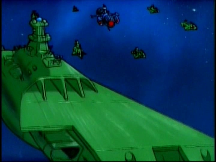 Back in the present, Desslok proceeds with phase two of General Garotte’s assignment, ordering his assault carrier to advance and engage the Star Force. Gamilon attack bombers take off and begin an attack run. On board the Argo, Wildstar awkwardly makes his way to the Bridge, where the rest of the main crew is struggling to remain at their posts. Sandor confirms that the Star Flies contained a metal-eating bacteria that has done damage to the Argo’s gravity control system. Worse, Eager detects the incoming Gamilon bombers on their attack vector heading towards the ship.