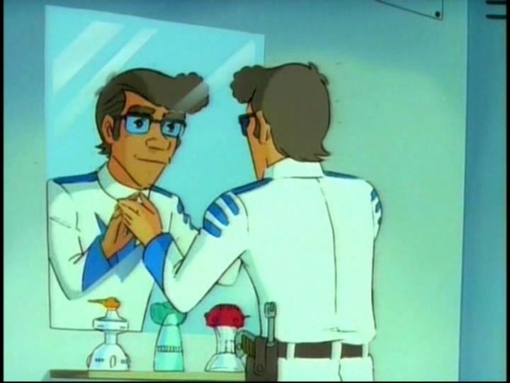 Meanwhile, on board the Argo, crew members are getting ready for their meeting with Trelaina. Nova gathers some flowers from the sip’s hydroponic garden that Wildstar can give to her, because her planet is so desolate. Elsewhere, Royster preens, telling IQ-9 that he expects Trelaina to fall hopelessly in love with him. The robot responds by messing up his hair. And on the bridge, Knox and the marines finally report in, broadcasting images of the devastation back to the Star Force. Sandor theorizes that such destruction could only have been caused by a war. In STAR BLAZERS the Star Force theorizes that possibly the Comet Empire was responsible for this attack, whereas in YAMATO 2, this is conclusively ruled out–an odd change to make.