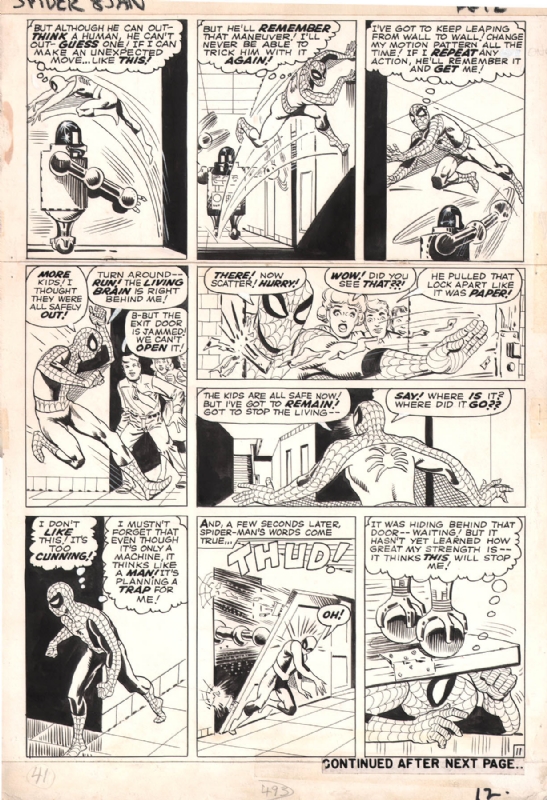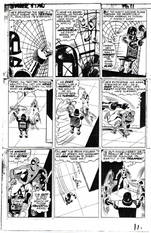 ADDITIONAL: Glen David Gold was able to point me in the direction of a scan for a page from the lead story in AMAZING SPIDER-MAN #8 that shows clearly that it was cut up and hand sequences rearranged. Whether this means that the “Living Brain” story was initially intended to be longer and was edited down to make room for “Spidey Tackles The Torch”, I can’t really say. But that lead story was definitely edited in a very intrusive and hands on fashion.