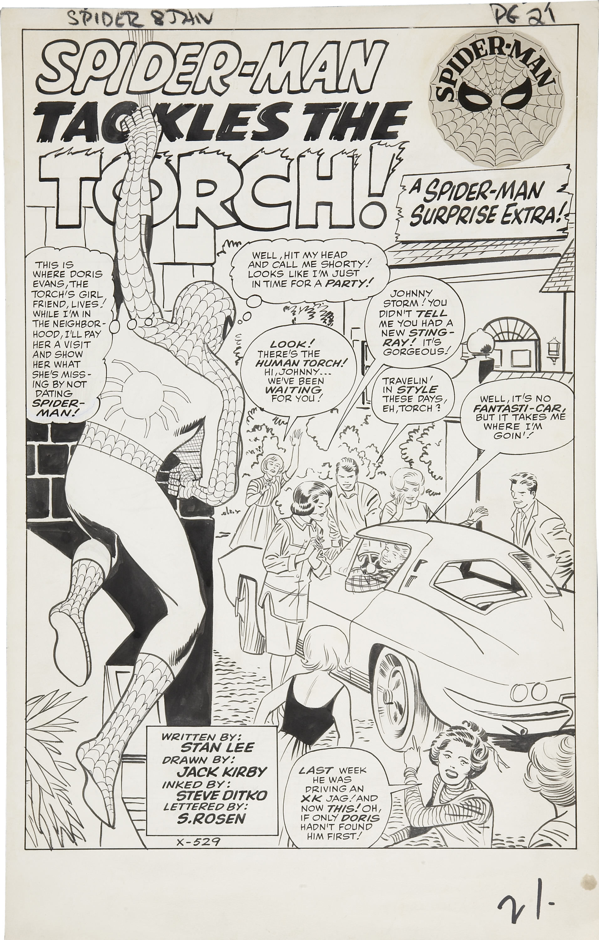1. I’ve read that piece, and I don’t agree with its conclusions at all. One only needs to look at the two stories side by side to see the difference in storytelling approach between Ditko and Kirby, and how Kirby is having to fit his new actions in awkwardly between moments that Ditko has already established. The Kirby pages are simply awkward and unnatural—because he’s needing to work from what Ditko has already done.