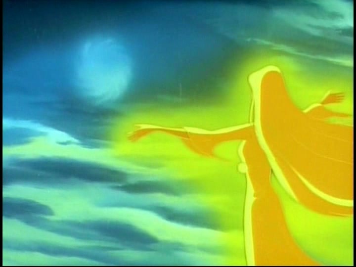 And indeed she is. Summoning her mind energy, Trelaina casts out a wave of energy that begins to transmute the very structure of her planet. “Telezart is changing its form! It’s going into pure energy!” screams one panicked Comet Empire technician. With this done, Trelaina hurls the entire planet at the Comet Empire, crashing it against their shields and causing the very structure of the city-state war machine within to buckle and warp. As you’d expect, a bunch of Comet Empire fatalities are edited out of STAR BLAZERS at this point, all of them simply random Empire soldiers who meet their maker. The whole thing is a spectacular sequence, a veritable orgy of destruction.