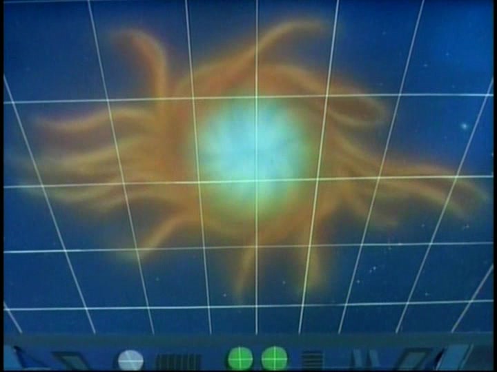 As the reaction begins to subside, Eager, Sandor and Wildstar monitor it up on the bridge. Suddenly, a large element separates itself from the rest of the gas. Sandor has Eager switch the image to the main video panel, and the crew is horrified to see that the Comet Empire has survived. But Sandor points out that it’s way off course now and has suffered heavy damage–they’ve gained the time they needed to beat it back to Earth. (Why they don’t turn around and attack it here and now, while it’s weakened, and try to finish it off is never brought up, but I’ve wondered about it ever since the first time I watched this episode. Dumb Star Force…)