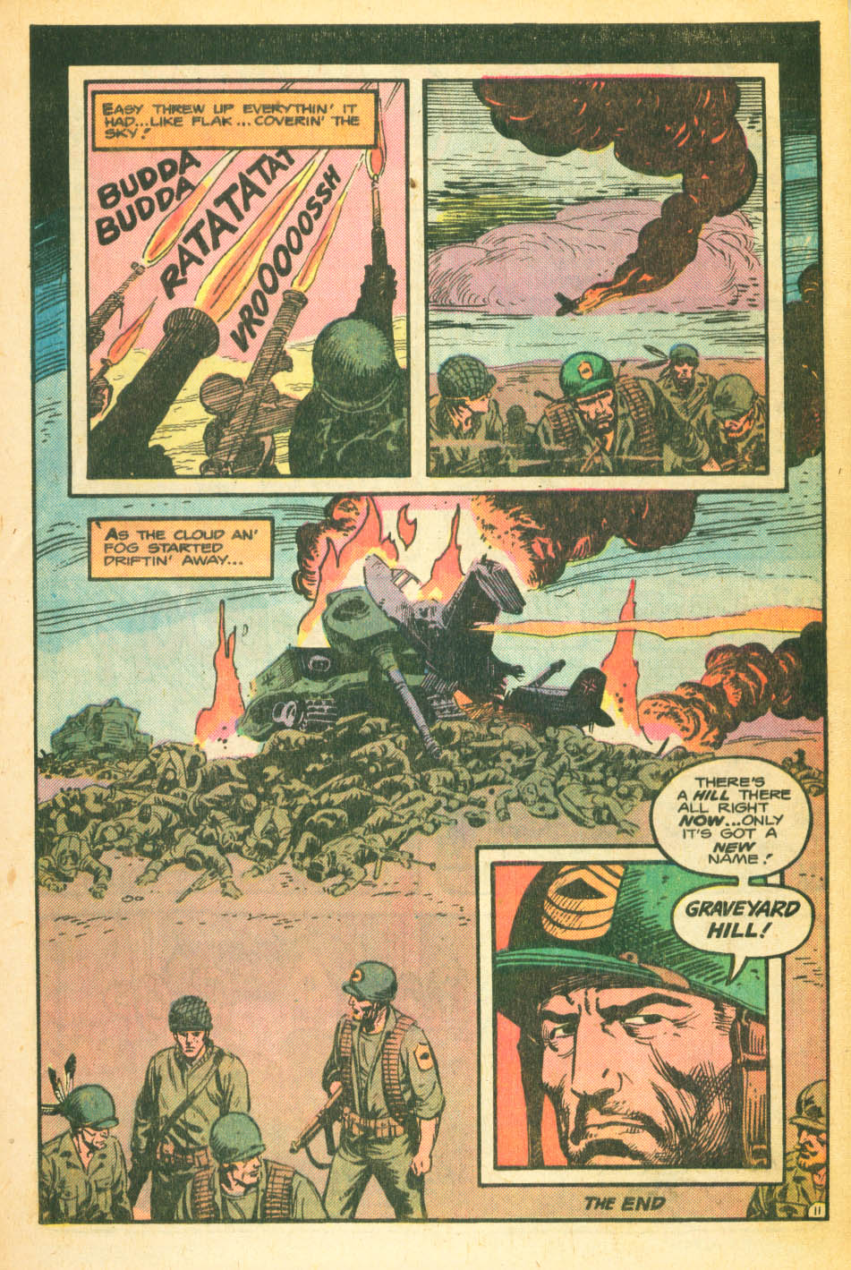Getting out of the infirmary and back to his unit, Rock and Easy are assigned a third hill to take–this one No-Name Hill. But when they arrive at the coordinates, all they see is a flat, barren patch of land. The Germans throw troops and tanks at them, and even planes, but Easy Company fights its way through them all–and when the dust settles, there is a new hill on that spot: Graveyard Hill, made up of all of the corpses of the fallen soldiers. Honestly, it’s not much of a story, and far from writer Bob Kanigher’s best work.