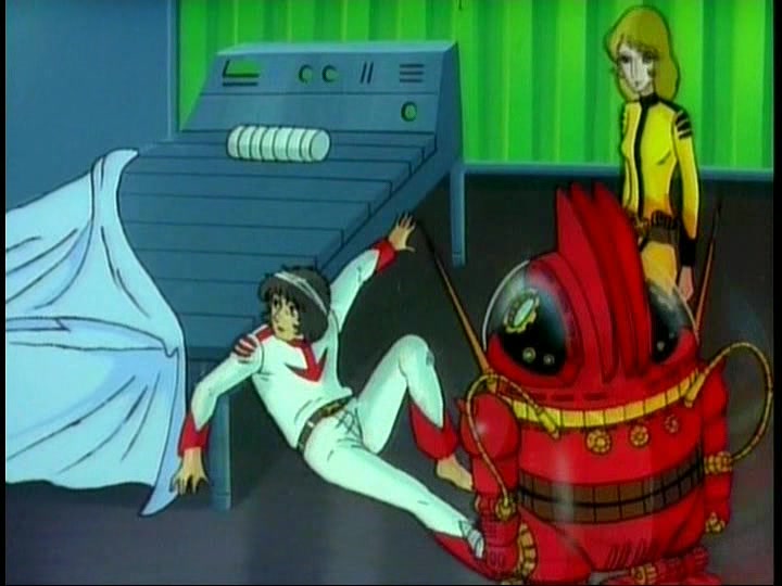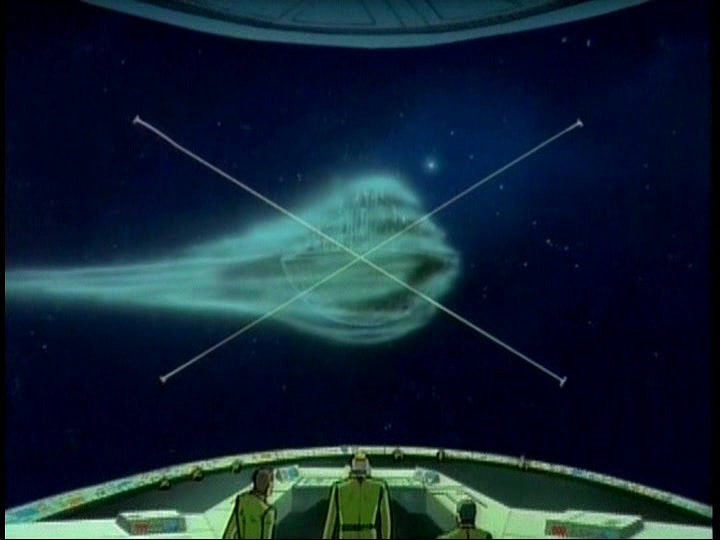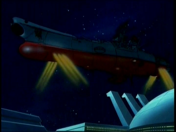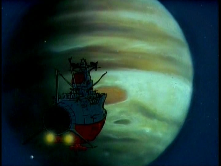 As the episode opens, the Argo drifts near Jupiter. The fire is out and the Star Force is back on board, and they’re struggling to make repairs and get the ship working again. but until the Wave-Motion Engine is repaired, they’ve got only the auxiliary thrusters to maneuver the ship. They’ve been making their way to Ganymede, Jupiter’s moon, where the Earth has a repair depot that they’re hoping to use to make the repair process go quicker. Additionally, the ship’s communications equipment is out, so they can neither send nor receive–so they have no idea what’s transpiring with the Comet Empire.