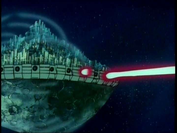 I wonder if the line “the entire moon is burning” is a ‘lost in translation’ matter. From the cracks opening up in the moon’s surface, and the mass of debris around the Comet Empire in the aftermath (https://youtu.be/iJgrAW61PB0?t=145), it certainly does look like it was destroyed. (The re-appearance of the moon a few episodes later could be nothing more than a continuity error – it’s not like Star Blazers doesn’t have enough of those! Or it could be that the debris of the moon had begun to re-coalesce due to the gravitational forces of the larger remnants…)