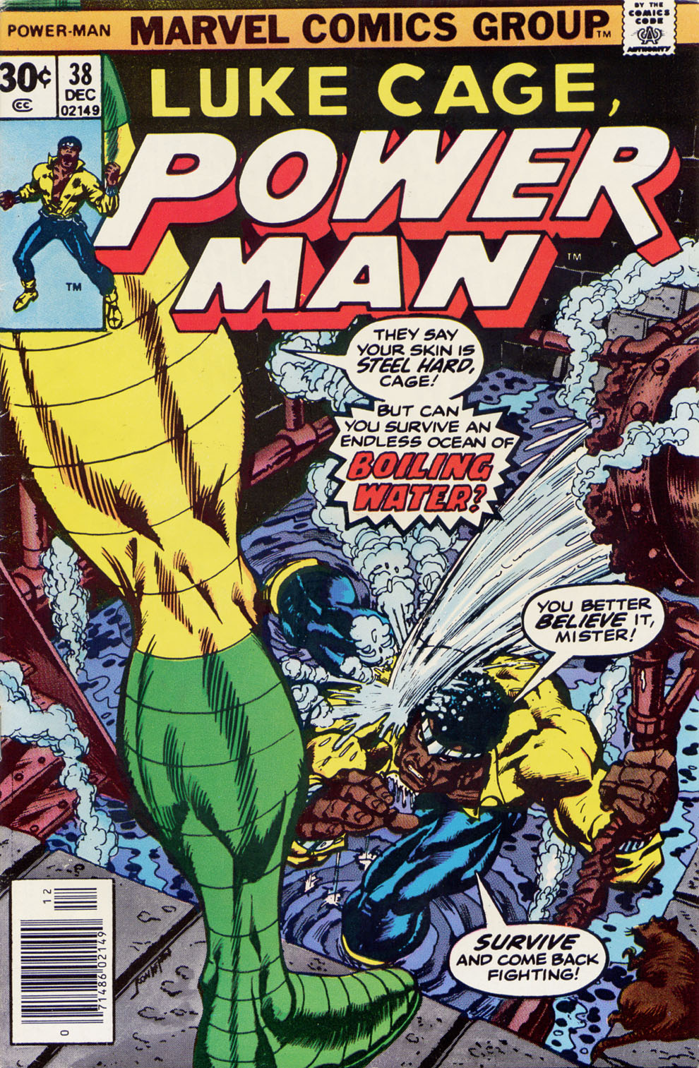 But then it’s time for the wrap-up. Midnight, and Cage is on the move across the city, headed for Big brother’s stronghold. He bursts in and kicks his way through a small army of goons, only to be confronted by Big Brother himself–who looks like he shops for clothing in Jack Kirby’s castoffs. To Be Continued! Unfortunately, the letters page informs the readership that the next issue was going to be handled by yet another completely different creative team, so the storyline would continue but in different hands. This situation plagued POWER MAN for the longest time, pretty much up until is title was merged with that of IRON FIST and things settled down a little bit for awhile.