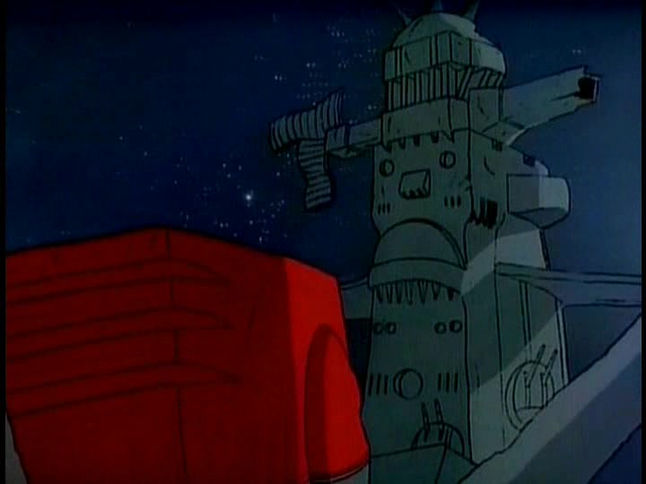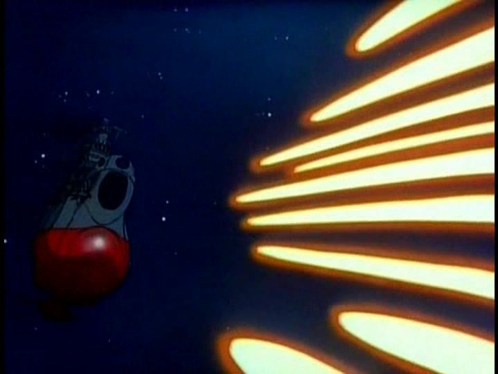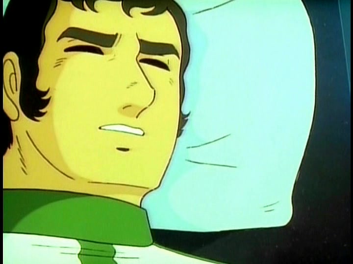 We had no idea, tuning in on that Tuesday, that the ten-and-a-half week journey of STAR BLAZERS was about to reach its conclusion. Wednesday would take us back around to the beginning of the series, which would play thereafter in reruns. We were also largely unaware that in Japan, further stories were in the process of being told about these characters–it was the strong interest in these unseen stories that drove a large part of the early fandom for STAR BLAZERS and the larger realm of “Japanimation” from which it sprang. It was also an excellent episode to go out on, despite its necessary deus ex machina ending–and despite the need to edit out several bits of business from the original YAMATO 2 episode. If the previous episode was all about winning a hard-fought victory, then this one is about shouldering a bitter defeat.